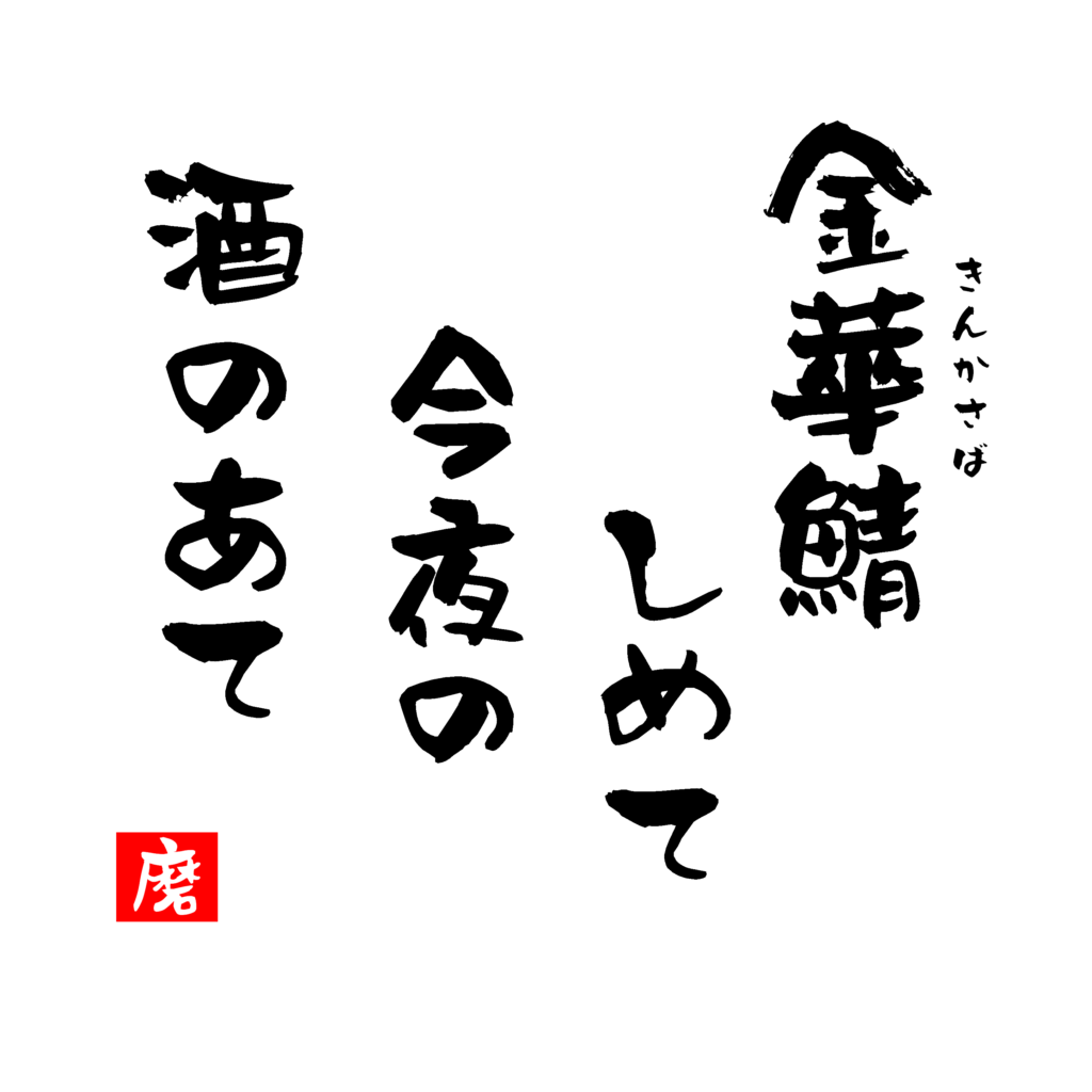 [kinka-saba shime te konya no sake no ate]